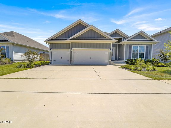 Just Reduced 10.15.25 to $425,000. Titus Park, Welcome to The Destin, a beautifully designed one-story home offering four spacious bedrooms, three full bathrooms, and a spacious three-car garage, all nestled in one of Panama City's most desirable and growing communities. This thoughtfully laid-out home features a bright and welcoming foyer, leading into an open-concept living space perfect for both entertaining and everyday living. The gourmet kitchen is the heart of the home, complete with stainless steel appliances, large walk-in pantry, and a central island with a sink that keeps you connected to the living and dining areas. Just off the kitchen, the breakfast nook offers natural light and a custom-built desk area that matches the kitchen cabinetry—ideal for working from home or managing household tasks.