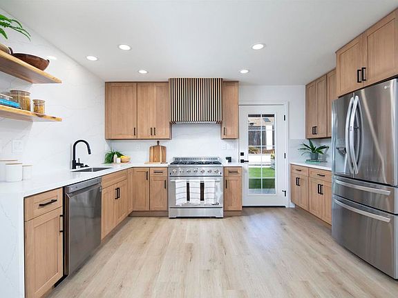 Welcome to 4870 Mount Armour Drive — a fully renovated, move-in ready home in one of Clairemont’s most sought-after neighborhoods. Quiet streets, top-ranking schools, and thoughtful design make this an ideal choice for families, professionals, or savvy investors. Step inside to discover three generous bedrooms, two full bathrooms and a BONUS ROOM, all transformed from top to bottom with premium finishes. The home features luxury vinyl plank flooring throughout, combining strength and ease of care with a clean, contemporary look. The heart of the home, the kitchen, is outfitted with quartz countertops, soft-close cabinetry, and a commercial-grade oven ready for your culinary ambitions. Each bathroom is finished in fine porcelain tile. The primary bath elevates the everyday with a freestanding tub and dual rainfall shower heads — your own home spa experience. Comfort is assured year-round thanks to a modern central heating and cooling system, while the fully paid solar array helps offset the electric bill nearly entirely. Practical touches add to the appeal. The garage includes a washer/dryer hookup as well as a 40-amp electric vehicle plug for charging. The backyard is laid in high-durability turf — low maintenance yet ideal for entertaining or simply relaxing outdoors. Notably, three of the bedrooms offer direct access to the yard, a feature that lends flexibility for multigenerational living, casual indoor–outdoor flow, or even potential rental use. This home is more than a renovation — it’s a complete reimagination of comfort, style, and value in a quiet, desirable Clairemont setting. Schedule your private showing today and experience it in person.