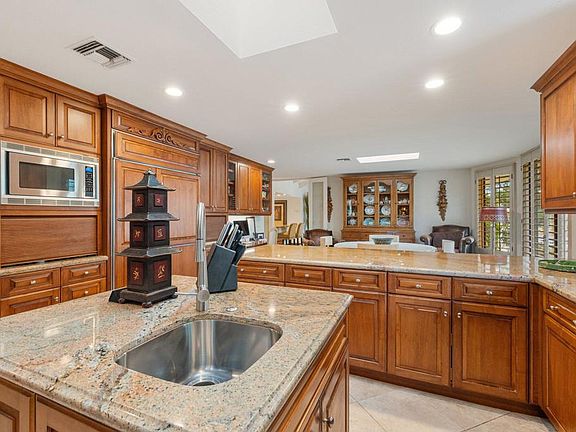 Massive fireplaceSubzero refrigeratorGourmet kitchenCenter food prep islandOutdoor showerLush landscapingCentrally located bar