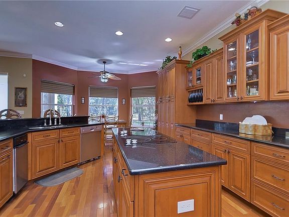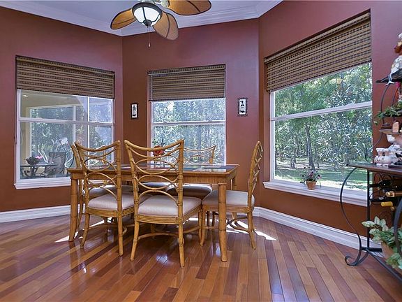 Amazing Custom Home sits on 9 acres of beautiful wooded land, and was built in 2005 to the highest standards. This home has wood floors throughout the living main area, and features luxury finishes like crown moldings, custom lighting and fans, plantation shutters, and more. This home offers seclusion and function! The kitchen is huge and features granite counters all wood cabinets, an eat in Breakfast nook large enough for a full size table. The Kitchen and Great Room Combo is perfect for the home owner who loves to entertain, and the large screen lanai provides additional room for entertaining. This Home is a Must See! Room Measurements are estimated buyer should verify. Equestrian trails and stables nearby, zoning permits horses.