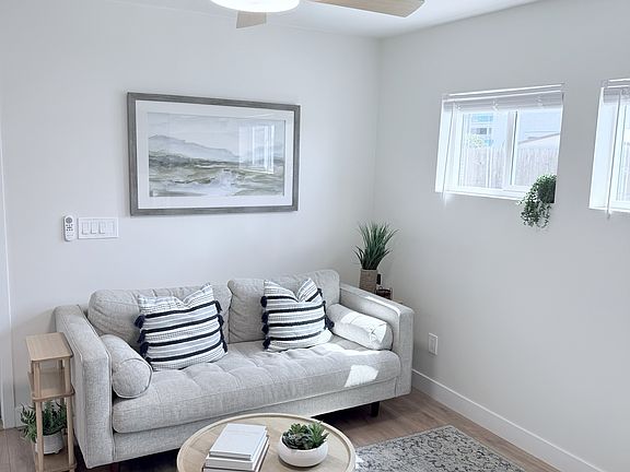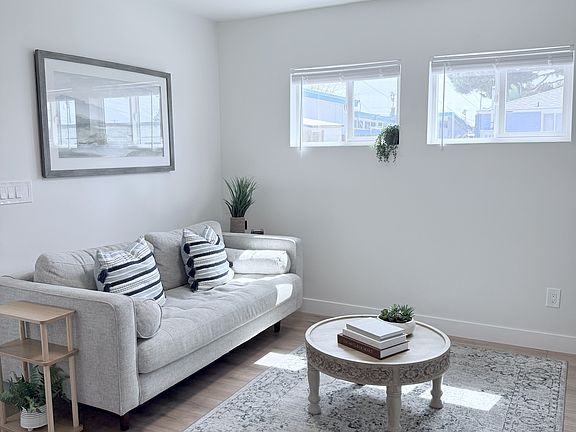 Brand new, fully furnished 1 bed / 1 bath apartment 3 blocks from the beach in Ocean Beach! We also get you started with necessities like paper towels, toilet paper, dish soap, laundry detergent, coffee. + All utilities included (electric, gas, water, internet). + Washer/Dryer and Dishwasher in unit. + MiniSplit for AC (rare for the area) and Heat + No offstreet parking but there is free unpermitted street parking. + Large amount of storage for a unit this size (full size closet in bedroom, hydraulic lifting queen bed with storage underneath, kitchen pantry, small private outdoor storage area for bikes etc). This unit was recently constructed and ready for you to be the first tenant! The apartment is accessed through the alley with a private gated entrance leading to the front door and a small outdoor storage area for bikes, beach gear etc. Enter into the open concept living room / eat in area / kitchen. The layout is very modern and functional. The living room has a flat screen smart TV with netflix included and you're welcome to login to any of your other apps. Separate eat-in area for enjoying meals and could also be used as a work from home space. The kitchen is beautiful with quartz counters, stainless appliances, and fun beachy green subway tile. We provide all pots / pans / dishes / utensils / french press / electric kettle / etc. The bathroom has a tiled shower and is also where the washer/dryer is located. The bedroom has a comfortable SweetNight queen mattress and a large wall to wall mirrored closet. Amazing location in Ocean Beach: - 3 blocks to beach / 8 minute walk - 8 minute walk to Newport St - 3 minute walk to Voltaire St - 10 minute drive without traffic to the airport All utilities included - gas, electric, water, internet.