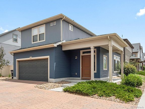 Brand New Roof! Brand new water heater plus LG stainless steel appliance package (seriously check out the ice in the freezer!) Tons of bonuses already done for you - granite counters in kitchen and bathrooms, upgraded cabinets, tile floor, tile shower in main bathroom, and lighting fixtures. Completely fenced, private backyard with the best astro-turf available - cooling and odor resistant for those pups! Spacious, open living room and kitchen area paired with foyer and half bath in the front hallway make life comfortable. The 2 car garage is drywalled and upgraded with an epoxy floor - super cool! Each bedroom upstairs has its own attached bathroom with the laundry room located between (washer and dryer included). Low maintenance yard to make life easy (snow removal and front yard managed by Metro District). Centrally located for easy commutes to I-70, E-470, or Denver International Airport with plenty of parks, schools, and recreation center nearby. Walk to the Green Valley Ranch Golf Club if golf membership is your thing. No monthly HOA dues as the Metro District fees are included in your property taxes!