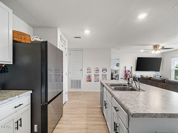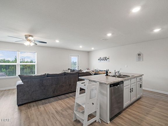 Welcome to this beautifully maintained 4 bedroom, 2 bath home located in the highly desirable Liberty community, just 14 miles from Tyndall Air Force Base. This property sits on a quiet homesite backing up to community-owned wooded land, offering rare privacy and natural views. Inside, you'll enjoy a bright, open layout that's perfect for both everyday living and entertaining. The spacious kitchen features white shaker-style cabinets, a large center island, stainless steel Whirlpool appliances, and an easy flow into the living area ideal for gatherings with family and friends. The primary bedroom includes a generous walk-in closet, an en suite bathroom, and peaceful views of the greenery behind the home. The additional three bedrooms provide plenty of space for rest, work, or guests. A second full bathroom is conveniently located between two of the bedrooms for easy access. Additional features include a dedicated laundry area, a two-car garage, and a large backyard ready to be customized into your own outdoor retreat. Built just two years ago, this home offers modern construction, energy-efficient features, and low-maintenance living. The Liberty community provides exceptional amenities including two resort-style pools, a splash pad, two playgrounds, a fully equipped fitness center, pickleball courts, and a basketball court. You're also just minutes from the new Publix on Highway 231, and steps away from walking and biking paths throughout the neighborhood. This home blends convenience, quality, and thoughtful design in one of Panama City's fastest-growing areas.