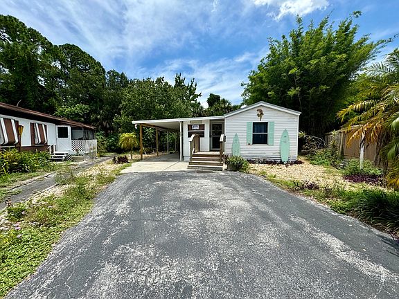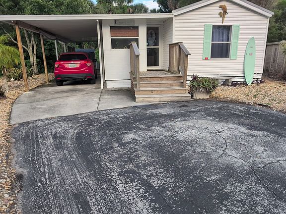 WHISPERING PINES 55+ ADULT PARK ~ Enjoy Space Coast Living! Call to view this 2002 Mostly Furnished 2-bedroom 2-bath split plan home. This lovely home sits in a private, wooded location nestled at the back of the park, on a nicely sized lot. The exterior offers plenty of driveway parking and a carport, a nice back deck and patio area to enjoy nature, plus a shed for storage. The metal roof was added in 2016, AC plus thermostat and duct work updated in 2019, insulated, enclosed front porch with a portable AC, and custom blinds. Step inside to view the updated master bedroom/bath with jetted tub, vanity, and laminate flooring, to include a Tankless water heater added in 2024. Most of the furnishings will be included, just a few pieces will be removed. Some kitchen and bath essentials will remain. *The kitchen does not have a stove or microwave. The seller uses alternative cooking (toaster oven, microwave, cook plates). Enjoy the large lanai with beautiful bamboo-style blinds giving the home a tropical vibe. Retreat to either cozy bedroom for your comfort. A dedicated indoor space for the washer and dryer makes laundry care a breeze. Utilize the outdoor shed for extra storage. Whether you're looking for a home year-round or a winter getaway, this is the perfect place for you! Third-party financing is available with qualifications to include a monthly LOT fee. OUT OF TOWN!?!? NO WORRIES, WE CAN DO VIRTUAL SHOWINGS AND WE CAN DO PAPERWORK REMOTELY. FEEL FREE TO CALL, TEXT, OR EMAIL ME. I LOOK FORWARD TO HELPING YOU CALL YOUR NEW HOUSE A HOME! Whispering Pines is a 55+ adult park. All new owners must complete the park application for approval ONLINE, $50.00 app fee per occupant, 2 owner occupancy MAX per unit. The current lot rent is $672. This fee offers use of the clubhouse/shuffleboard/horseshoe pit, trash, and pass-through tax. The park is responsible for all common areas. Utilities are the buyer's responsibility; Water is with the City of Titusville, FPL power company. Animals permitted with park approval. No renting of a home is permitted. This park is centrally located for access to coastal destinations such as Daytona Speedway, as well as Disney/Orlando attractions. Titusville is the perfect area for viewing rocket launches from the Kennedy Space Center. Set up chairs in your front yard and enjoy the view! Everyone can have fun with a variety of activities on the East Coast, including airboats, skydiving, bird-watching, surfing, sunbathing, shelling, deep-sea fishing, and so much more. Whether you are looking for a home year-round or a winter escape, make this home your next adventure! The park is located very close to US 1, almost across the river from the Cape Canaveral Space Station. Cocoa Beach and the Cape Canaveral National Seashore are only 30 minutes away, and you're also only about 45 minutes from the Orlando Airport and attractions. Don't wait - Call today! All listing information is deemed reliable but not guaranteed and should be independently verified through personal inspection by appropriate professionals. We do not and cannot guarantee or warrant the accuracy of this information or the condition of this property. Measurements are approximate. The buyer assumes full responsibility for obtaining all current rates of lot rent, fees, and pass-on costs. Additionally, the buyer is responsible for obtaining all rules, regulations, pet policies, etc., associated with the community, park, or home from the community/park manager. We are not responsible for quoting of said fees or policies.