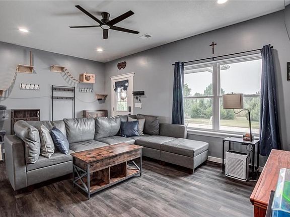 ***MOTIVATED SELLER!!! $10,000 PRICE REDUCTION**** 3 YEAR NEW HOME WITH YOUR OWN LITTLE PIECE OF MOTHER EARTH! 3 acres of land is the setting for this lovely home! 3 bedrooms w/additional room for office/crafts/game room or whatever you want to make it! Open floor plan greets you at the front door with comfortable living room, dining room with a view out to covered patio (Great for grilling or relaxing!) and large kitchen w/custom built Beach wood cabinetry including a large island and pantry for extra storage-Split bedrooms with Lovely Master-spacious Master Ba with slipper tub -separate tiled shower and walk in closet (Closet is fully concrete storm shelter as well!) Then the 2 secondary bedrooms are on the order side of the home -both with large closets -A separate laundry room with built ins and sink-2 car garage w/extra space for workshop area! Private setting with home located past the trees along a winding driveway. Located just off 59 hwy between Lawerence and Ottawa! East commuting to Lawrence-Topeka-KC and more!