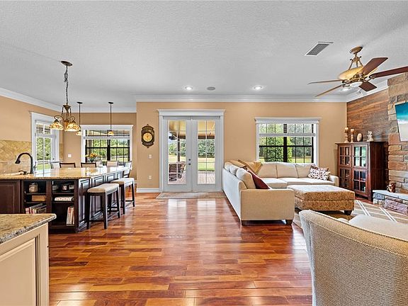 $20K SELLER CREDIT with a Full-Price Offer! Discover the best of country living just minutes from Lake Nona at this stunning, one-owner custom home on five oak-shaded acres. Built with craftsmanship by one of Central Florida’s premier builders, Barry Bryant, this property blends timeless design with modern convenience, no HOA, no CDD, and energy-efficient concrete-block construction with foam-insulated walls. Step through the solid-wood front door into a light-filled home featuring 10-foot ceilings, hardwood floors, and fine custom woodwork throughout. The dedicated office offers floor-to-ceiling built-ins, while the formal dining room’s bay window and bench seating create the perfect setting for family gatherings. The chef’s kitchen showcases 42” crown-molded cabinetry, granite countertops, a prep island with sink, and hidden spice storage, all opening to a spacious family room centered around a striking floor-to-ceiling stone fireplace. A guest bedroom with full bath downstairs provides comfort and privacy for extended family. Upstairs, the primary suite feels like a spa retreat with a soaking tub, walk-in shower, dual vanities, and a custom closet system. Enjoy your morning coffee or evening glass of wine on the 25×50 covered lanai, surrounded by towering oaks and visiting wildlife — deer, wild turkeys, foxes, hawks, and even bald eagles. With five acres of natural beauty, there’s ample room to add a pool, summer kitchen, or outbuilding, and plenty of space for RVs or recreational gear. Located just minutes from SR-417, Medical City, top-rated schools, and Orlando International Airport, this home delivers the tranquility of acreage living with the convenience of Lake Nona. Move-in ready, built to last, and crafted with care, a true one-of-a-kind retreat. Because no matter how fast Central Florida grows, the one thing you can’t build is more land… and it only goes up in value.