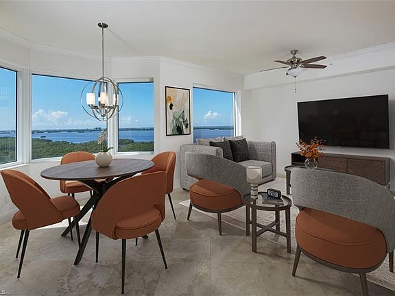 C8531- Major Price Reduction! Newly painted Interior! Abundant views from every angle! Enjoy spacious living with 3 bedrooms, 3 1/2 bath, and wrap-around terraces. Expansive water views of Estero Bay and Gulf of Mexico from this 11th floor corner residence of Palermo. Private elevator entry. Primary suite with terrace access and dual walk-in closets. Each guest suites with their own terraces and private baths. Electric hurricane shutters included. Palermo has 2 guest suites, a theater, billiards, pool/spa, BBQ pavilion and fitness center, as well as a front door privacy officer to greet you and your guests. Residents of The Colony enjoy private membership to waterfront dining facility, The Bay Club, fantastic intimate dining or informal sunset dining/entertainment. Experience a full array of amenities such as kayaking, canoeing, sailing, bocce, tennis, pickle ball, and the private beach park accessed by water taxi. 15 minutes to the airport.