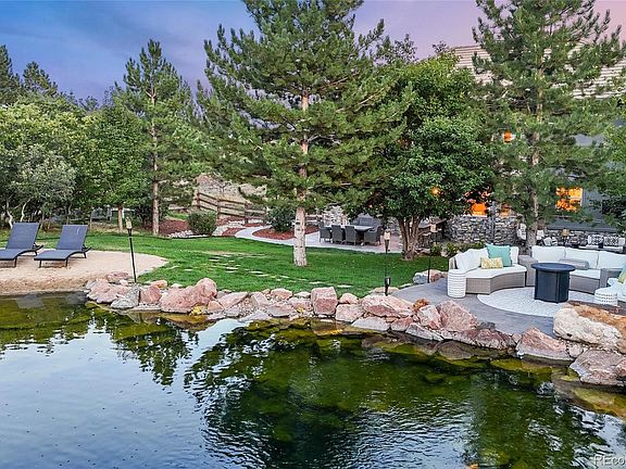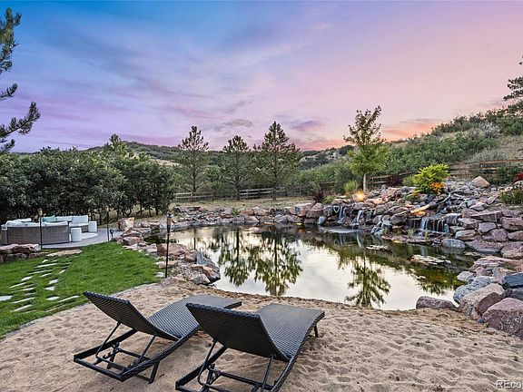 Luxury and style paired with a warm and welcoming vibe! 4875 Wilderness Place is an entertainer’s DREAM - Perfectly situated in the exclusive Pradera community of Parker, Colorado - home of The Club at Pradera, an exclusive private golf community that winds through the peaks and valleys of Parker's unique landscape.. This stunning estate sits on a peaceful and private cul-de-sac, just steps from the golf course, without feeling like you “right-on-the-golf-course”. Every square inch beautifully appointed and updated - This home is truly one of a kind... inside and out! The main level offers a gourmet kitchen with top-of-the-line appliances, a large pantry and laundry room, spacious living areas, a formal dining room, office, elegant formal sitting room, and an inviting family room that flows perfectly off of the main kitchen! Upstairs, boasts a luxurious primary suite featuring a spa-like bath, oversized closet, and a private balcony overlooking the gorgeous back yard with its absolutely unmatched setting! The lower level is built for fun, entertainment and sharping your golf game - complete with a full bar, game room, gym, and even a full-custom golf simulator. Step outside to your own resort-style backyard featuring a swimming pond with beach entry, professional landscaping, with lily ponds, waterfalls, putting green, hot tub, outdoor kitchen, in-ground trampoline and more! This home’s backyard and setting simply will not be matched by any other home at any price-point, in the entire area! 4875 Wilderness Place is not just a home - it’s a lifestyle. You simply will not find another property like it…and you will not want to miss out on the chance to tour the home and make it yours!