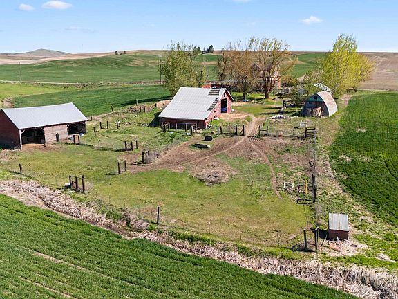 Welcome Home! Sitting on just over an acre is this adorable farmhouse with so much charm and character! Inside you will find a bright open kitchen with a large island and stainless steel appliances, open to the living/dining room that contains a wood burning stove AND a pellet stove, main floor primary bedroom and utilities, and 2 main floor bathrooms. Upstairs you will find 3 additional bedrooms with large closets, and additional storage space. Soak in the hot tub, or enjoy your coffee on the large covered deck and soak in the views of the surrounding farm land. Outside you will find a barn and fenced property with plenty of room for horses, goats, or chickens, space for a garden, a 2 car shop/garage, and an additional out building that can be converted into an ADU, used for storage or even an additional office space. Tired of neighbors? This property is completely surrounded by over 400 acres of farmland, and not a single neighbor in site. Call for your private showing today!