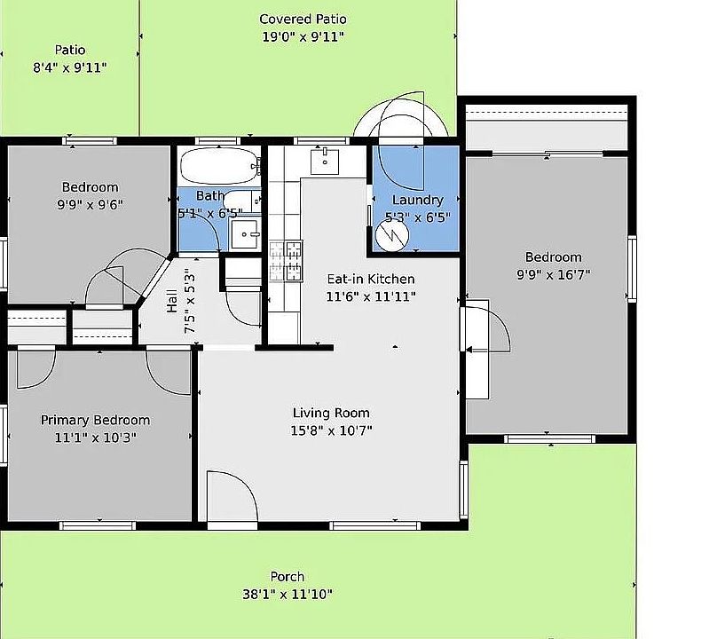 - Patio & porch: Covered, Front Porch, Patio
