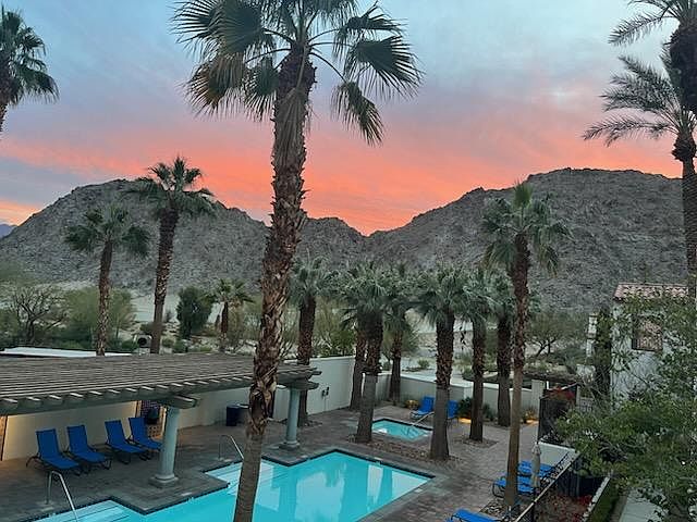 Premium View and location within resort-like Legacy Villas! Furnished upstairs unit with perfect views in fantastic location near main pool and fitness area. Legacy Villas is a guard-gated community tucked nicely against the mountains that boasts 11 pools, fitness room, seasonal cafe and well manicured grounds. Two king bedrooms with private balconies set up in a lock-off situation for ample privacy for your guests. One car garage included and additional parking available. Air conditioners new as of 2022. Walking distance to the La Quinta resort and a few minutes to Old Town La Quinta or Highway 111 shopping; the ideal La Quinta location and lifestyle.