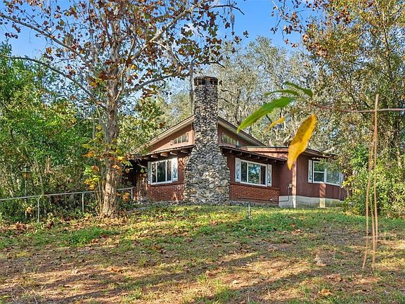 Great Mid Century Modern House! NO HOA and NO CDD! Great mid-century modern house just waiting to be brought back to its former glory. This property sits on almost an acre of private, secluded land, oIering a true hidden oasis with no restrictive community rules, River and Trail access. All appliances are included: Dishwasher, Range, Refrigerator, Washer, and Dryer. Enjoy peace of mind with extensive updates since 2022, including a New AC, New Water Heater, New Hurricane Windows, and newly installed laminate and tile floors. This home has a newer Metal roof. The Primary Bedroom has also been beautifully updated. The main house features 3 bedrooms and 2 bathrooms, with both a living room and a cozy family room featuring a fireplace. Just outside the door is a large, convenient laundry and storage area. The possibilities are vast: The property includes a huge 3-car carport with a separate small apartment above it, perfect for guests, income, or a home oIice. The well has its own private building. Additionally, there is a massive 792 square foot workshop with endless potential uses, and a substantial outbuilding previously used for exotic birds, which could be repurposed for raising chickens or rabbits or storing all your vehicles and toys. This compound oIers so many possibilities and must be seen to be appreciated. Located minutes from Dade City's historic downtown, the GiraIe Ranch, and the Pioneer Florida Museum. Hurry and schedule your private tour today.