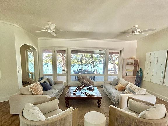 ft. retreat features 6 bedrooms, 3.5 baths, and sits on an expansive 2-acre, tree-covered lot with 200 ft. of waterfront. Fully furnished and
