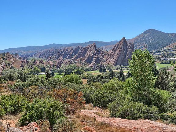 Nestled in the iconic red rock outcropping known as Fountain Formation with spectacular views ofDenver, this luxurious estate home has every detail accounted for. Open floor plan features wall towall windows capturing every view possible. Folding glass doors open to spacious outdoor livingwith a covered deck, fireplace, and optional outdoor kitchen. The main level includes a gourmet kitchen,stunning fireplace, private junior en-suite, study, luxurious master suite, and private deck. The openstaircase leads you down to a finished second level with additional guest suite, pub-style bar, wineroom, fireplace, and walkout to the extended outdoor living with paved patio. Located in a gatedcommunity with Arrowhead Golf Course, top 10 most-photographed golf courses in the world.Purchase this beautifully designed home or build your dream home on one of the three remaininglots from 0.75 to 1.21 acres.