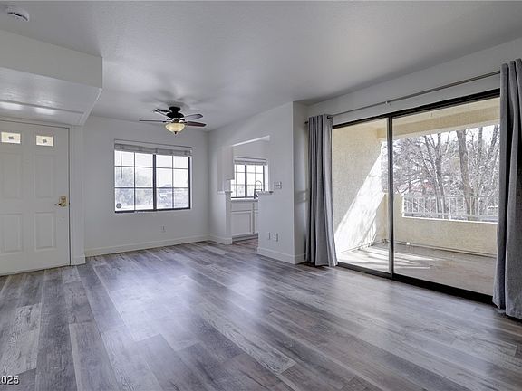 Price Reduced! This charming one-bedroom, one-bath condo in the gated Los Verdes community offers comfort and convenience in the heart of Las Vegas. Located on the second floor, this 569 sq. ft. unit features an open living space with luxury vinyl flooring, a cozy gas fireplace, and a private covered patio. The kitchen includes a dishwasher, refrigerator, and microwave, with a convenient in-unit washer and dryer. The spacious primary bedroom boasts an ensuite bath with a tub/shower combo. Enjoy access to two community pools and easy access to shopping, dining, and entertainment. A brand-new HVAC system ensures year-round comfort. Assigned covered parking included. Seller will consider Owner Carry Financing with 20% down at 5% interest for year one.