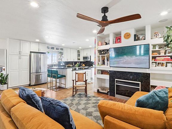 Experience the best of Allied Gardens living in this charming single-level home offering three bedrooms and two bathrooms on a spacious lot. Step inside to a warm and inviting living room with a cozy fireplace—perfect for relaxing or entertaining. The updated kitchen features sleek countertops, modern cabinetry, and stainless-steel appliances, opening to the dining area for easy family gatherings. Outside, enjoy a gorgeous tiered backyard with a view deck and spa—ideal for unwinding or hosting. Below the deck, a large grassy area provides plenty of room for play or gardening. The front yard features drought-resistant landscaping and potential RV parking in the driveway, adding both convenience and curb appeal. This home is designed for comfort and everyday living, featuring three spacious bedrooms, two full baths, and a functional floor plan that blends classic 1950s character with thoughtful modern updates. A two-car garage provides additional storage and practicality. Located in the desirable Allied Gardens neighborhood, close to parks, schools, shopping, and freeway access, this home combines charm, functionality, and a fantastic location—making it the perfect place to call home
