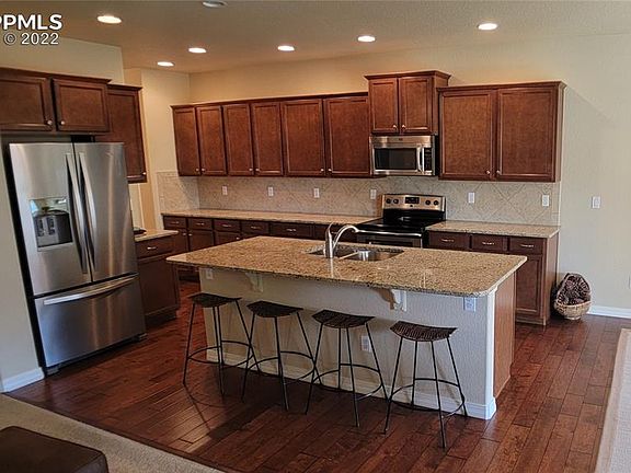 MOTIVATED SELLER!! Are you looking for a Beautiful Cordera Ranch Single Family home on a corner lot with Pikes Peak views, large backyard, patio, and perfect for entertaining? See this spacious feeling home with a double-sided fireplace serving the inside great room and outside patio. The gourmet kitchen features granite slab counter tops, kitchen island, stainless steel appliances and a walk-in pantry. This home is perfect for daily living and entertaining your friends! The main floor is has an expansive Great Room with a double-sided gas fireplace, serving as the heart of the home inside and outside covered patio. The Dining area has engineered hardwood flooring walks out to your beautifully manicure backyard featuring an attached covered patio, separate backyard firepit patio, and xeriscaping. The Upgraded Master Suite is completed with a 5-piece Master bathroom, large soaking tub, stand alone shower, double vanities Corian countertop and walk-in closet. A guest bedroom features built in cabinets, full bathroom, and laundry room completes the main level. There's plenty of linen and coat storage space in the main entry way. The huge finished basement boasts 9' ceilings, a spacious recreation room, gas fireplace, game area, and wet bar sets the tone for a perfect entertain space or quiet movie nights at home. There are two large additional basement bedrooms, a third full bath, a storage room, and mechanical room to complete this amazing lower level. The two car garage is extra deep and has finished walls. Possibly the best feature of this home is the large covered patio with expanded concrete, the stepping stones and firepit create a dreamy outdoor space all year long. This home is just a short distance from restaurants, shops, and walking distance from Cordera parks and to schools. Welcome Home! You won't want to miss this opportunity to own in this Cordera Community. Easy access to I25, 83, 21, 24 and Colorado Springs Regional Airport.
