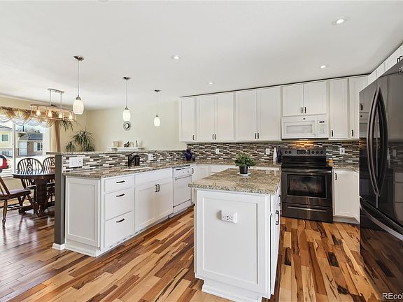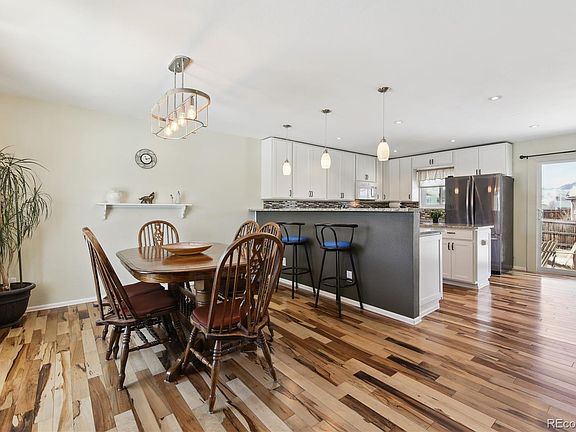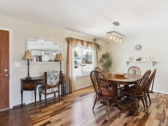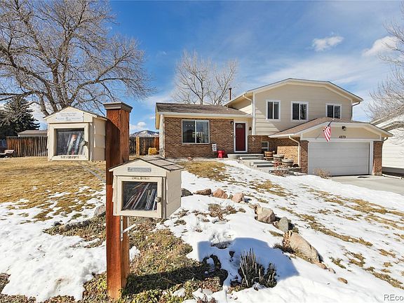 SHOW OFF YOUR GORGEOUS HOME! SPACIOUS CORNER LOT! OPEN FLOOR PLAN! REMODELED KITCHEN! MOUNTAIN VIEWS! Beautifully maintained home is filled w/natural light & offers an inviting open floor plan: Perfect for entertaining! The formal living room flows into the 2019 REMODELED KITCHEN. This is the kitchen that everyone wants to hang out around during a gathering! It might even inspire the cook to become the gourmet chef! Room for a kitchen table by the kitchen slider to enjoy coffee/meals & enjoy the view. HARDWOOD FLOORS w/personality span the main level, leading to a spacious-relaxing family room. More room for everyone. Guest bathroom & convenient laundry room add to the home’s functionality. IDEAL HOME FOR ENTERTAINING OR RELAXING. Step outside to a HUGE BACKYARD OASIS; complete w/a raspberry garden & raised garden beds. Accessible from the kitchen & family room: Ideal for indoor-outdoor living! STUNNING MOUNTAIN VIEW! Fully fenced backyard. Shed for tools or create a play area. The upper level includes a primary bedroom with a generous layout that offers plenty of space for a king-size bed & additional furnishings. Large windows provide natural light & peaceful ambiance. Ensuite bathroom, designed for both style & functionality. Two additional bedrooms w/ample closet space, natural light & ceiling fans. Full bathroom featuring a shower/tub combo, vanity w/ample storage & bright lighting enhance the space. The tile & elegant finishes create a relaxing atmosphere. Perfect for guests/family members, this bathroom provides comfort & convenience. Attached two-car garage w/lots of storage. Off-street parking on the stylish newly cemented driveway. The freshly cemented stairs leading up to the house add both durability & curb appeal, ensuring a welcoming entrance. High wind impact roof. Well-cared-for neighborhood with NO HOA. Quick access to Highways, Mountains, Shopping, Eateries, Red Rocks Amphitheater, Parks & Trails . REGISTERED LITTLE LIBRARY IN FRONT YARD.