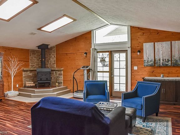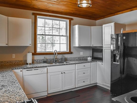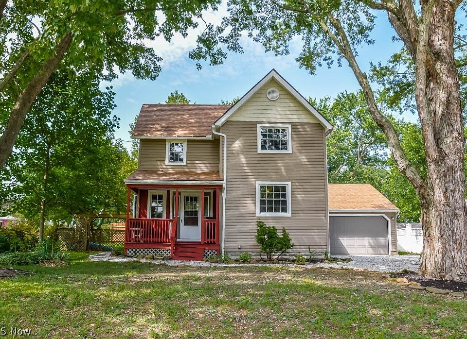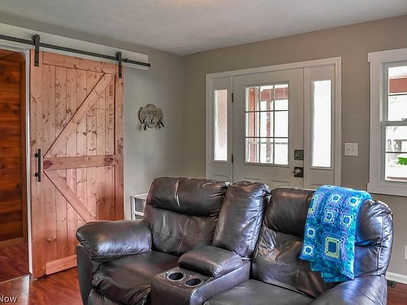 Absolutely gorgeous century-old, modern farmhouse on half an acre! A covered front porch leads you into a welcoming front living room with a bay window and sliding barn door to the kitchen. This room could also be utilized as a home office and closed off from the rest of the home for a productive atmosphere. Crack open your cookbook in the stunning, fully applianced kitchen with newer white cabinetry, granite countertops, an appliance pantry, undermount sink and serving bar to the dining room. Tall ceilings in the kitchen and dining room adorned with beautiful wood plank. A sliding barn door reveals a true gem: a breathtaking great room boasting vaulted ceiling, skylights, a woodburning stove and backyard access. A full bath and laundry room complete the main level. Upstairs, there are 3 bedrooms and a full bath with dual vanities and a linen closet. Super clean lower level with glass block windows and nicely painted flooring. Oversized 2-car attached garage with a pet door to the back