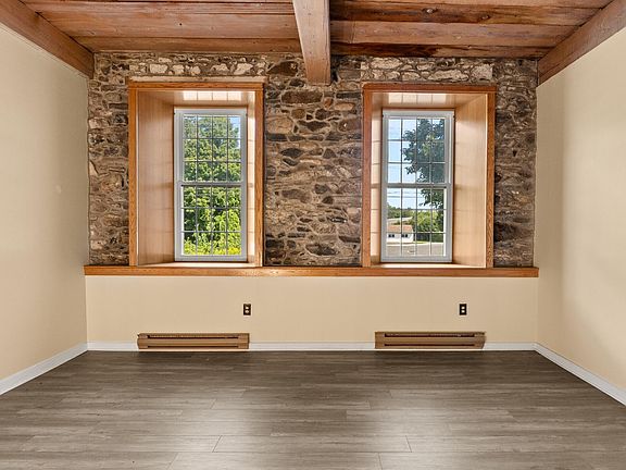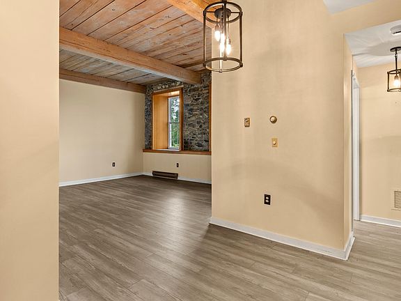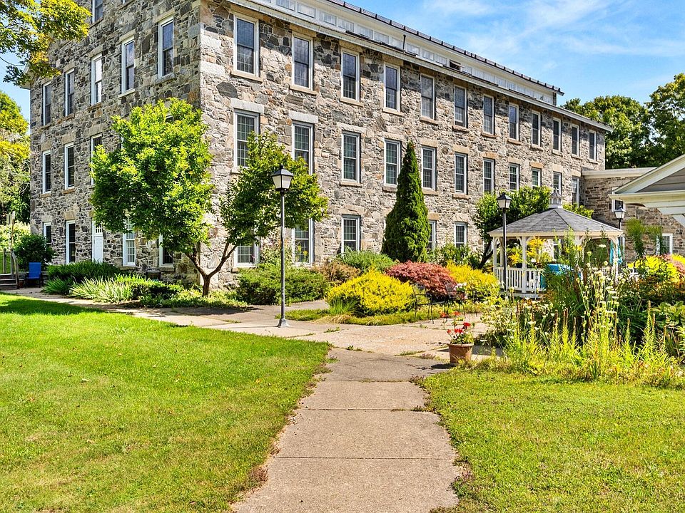 Stone Mill Condominiums in Dalton rarely come on the market, and this spacious first floor one-bedroom, one-and-a-half bath unit is a standout! Offering a unique blend of old-world charm and modern updates, the home features magnificent stone exterior walls visually enhanced by massive interior wooden beams and wood-beamed ceilings, creating a sun-filled layout that feels both warm and inviting.