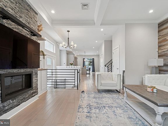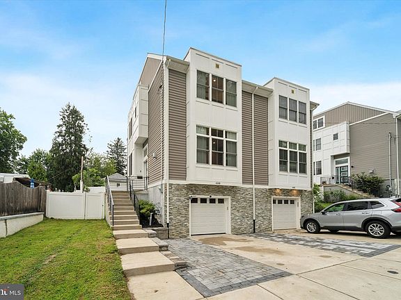 Nestled near the Montgomery County line, this modern Roxborough twin blends city access with the calm of suburban living! Welcome to 488 Evergreen Avenue, a thoughtfully designed 3-story twin offering 4 bedrooms, 3 full baths, 2 half baths, a 1-car garage, and a paved driveway accented with upgraded stonework for added curb appeal. With a few years remaining on the tax abatement, this residence offers exceptional value in one of Roxborough’s most desirable pockets. The main level features an open, sunlit layout with oversized windows, wide-plank hardwood floors, and high ceilings throughout. The kitchen is a standout with quartz countertops, stainless steel appliances, pot filler, pantry, and an oversized island with seating. Sliding doors off the kitchen lead to a deck that overlooks the fenced-in backyard — perfect for morning coffee or summer BBQs. A spacious dining area is adjacent to the kitchen, and a separate living room with coffered ceilings and a gas fireplace is great for relaxing or entertaining. A stylish half bath completes this level. The second level includes three bedrooms, including a vaulted-ceiling primary suite with a walk-in closet and a beautifully appointed ensuite bath with a dual vanity and walk-in glass shower. A full hall bath and a convenient upstairs laundry room complete this level. The top floor offers a large bonus room with its own full bath — a versatile space that works well as a fourth bedroom, guest suite or home office — and opens to a private rooftop deck for added outdoor space. The finished lower level is currently set up as a home gym and includes a half bath, storage, and interior access to the garage. This flexible space could also function as a playroom or media area. Ideally located just minutes from Chestnut Hill, Lafayette HIll, Manayunk, Kelly Drive, and the Wissahickon trails — and with easy access to Center City and the Main Line — this home offers the perfect mix of modern living and neighborhood charm. Don’t miss the opportunity to make this stylish, low-maintenance home your own in one of Philadelphia’s most desirable communities.