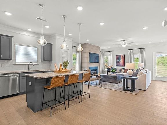 Modern linear fireplaceSpacious family roomSun-filled dining areaWelcoming covered front porchGenerously sized walk-in closetRelaxing covered rear patioSeparate shower