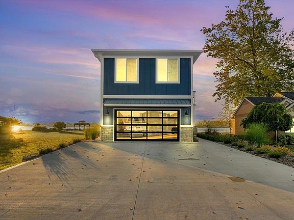 Welcome to this stunning brand-new waterfront residence offering the ultimate luxury lifestyle! This 4-bedroom, 2.5-bath home is uniquely situated with river frontage at the rear and a sheltered canal at the front—perfect for boating enthusiasts. The canal features a covered boat hoist accommodating up to a 50-ft vessel (20,000 lb. limit), plus a massive drive-through garage designed for easy boat storage and access. The main home boasts a see-through attached garage, full-house generator, and dual-zoned furnaces for comfort and efficiency. Inside, enjoy a modern open layout with sleek cabinetry, state-of-the-art appliances, and a dramatic floating staircase. The living room offers a cozy fireplace, while the primary suite provides its own private fireplace retreat. An elevator ensures effortless access between levels. Outdoor living shines with a custom kitchen featuring granite and stone finishes, grill area with heating, and a fireplace for year-round entertaining. With water on both sides, architectural elegance, and premium amenities, this property is a rare find for the discerning buyer