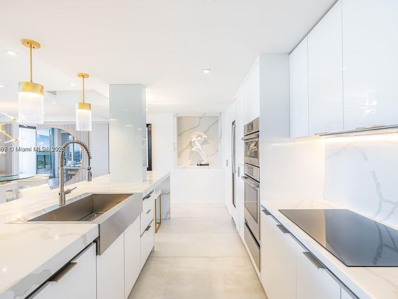 Stunning Custom 3257 sq ft 4 bedrooms (all en suite) 4.5 bathrooms! Gorgeous direct unobstructed views of the bay, Margaret Pace park, and the best of Edgewater. Enjoy a fully custom kitchen equipped with a built in sub-zero wine fridge, Bosch appliances and an oversized walk in pantry. Primary bedroom consists of double closets, bathroom with tub and shower, and double sinks. All rooms are equipped with black out shades as well as draperies. Aria on the bay has top of the line amenities including 2 pools (sunrise & sunset), hot tub, spa with sauna, steam room, kids play room, theater, and fitness center. Also enjoy amenities across the street open to the public such as Tennis, dog park, playground, and more. 3 Parking spaces.