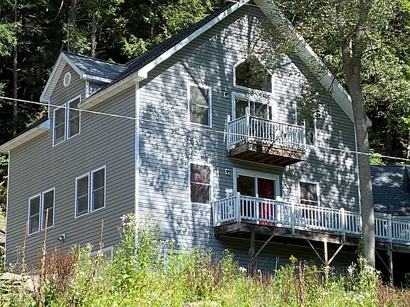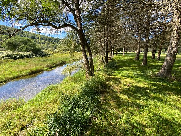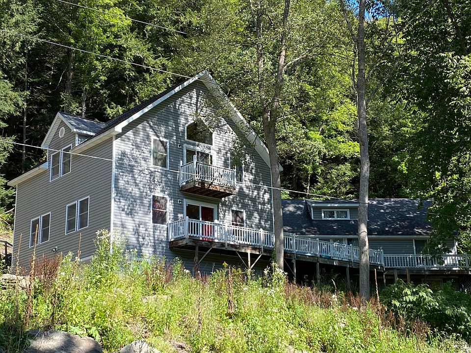 A beautiful, modern house overlooks its 425 feet of West Branch Delaware River frontage from a Catskill Mountainside perch and over 10 acres of gorgeous, flat fields and shady Black Walnut and Willow trees. This house is high and dry and the shoreline is gentle and calm. World Class Trout fishing is just a stroll away and the location is very private yet convenient to the Village of Hancock. Attributes include a spacious attached 2 car garage, Softwood and Bamboo flooring, updated utilities throughout, an expansive deck with river views and a massive master bedroom with cathedral ceiling and sliding glass doors to riverview balcony, gorgeous master bath with shower, tub and his/her sinks. This property has been a popular Air BnB destination for years and has been in the same family for generations. High speed fiber Internet lets you work from home in between watching Eagles soar and Trout rise.