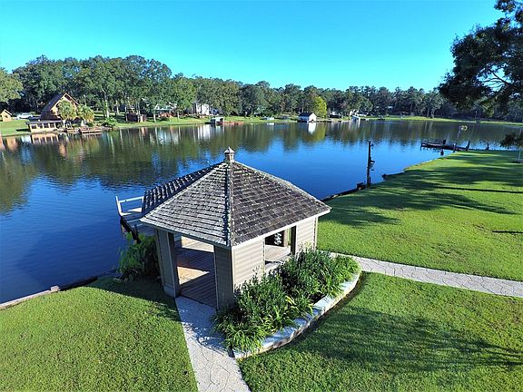 A Beautiful Cottage Lake Home. 106 feet of lake frontage on Lake Hulon. There is a gazebo, pier & a deck to enjoy some great fishing or just relaxing. John boat will remain. The 20x24 double carport & 16x20 workshop w/connecting concrete driveway was added in 2015. Attached single car garage w/sink & cabinets. Landscaping is awesome. Rainsoft water filter & softener system for whole house was installed in 2017. New roof & gutters in 2019.