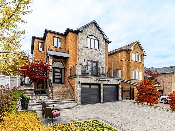 Discover this hidden gem in Vaughan's sought-after neighbourhood of Elder Mills, Vaughan. 488 Royalpark Way is a beautifully updated 4-bedroom brick home backing onto a peaceful ravine for ultimate privacy and scenic views. Lovingly maintained, it features a custom stone façade, interlock landscaping, and smart-controlled soffit lighting. Inside, enjoy a bright modern layout with smooth ceilings, engineered hardwood, and a renovated kitchen with stainless steel appliances (2 yrs old) and a walkout to the backyard-perfect for entertaining. The family room includes a cozy gas fireplace and a west-facing balcony for sunset views. Stylishly updated bathrooms and a spacious primary suite with a 5-piece ensuite elevate the comfort. Upgrades include triple-glazed windows (6 yrs old), new front door, frosted glass partitions, hot tub (5 yrs old), gas BBQ hookup, and electric car charger. The finished basement offers a cantina, 3-piece bath, and garage access. A move-in-ready home in one of Vaughan's most desirable neighbourhoods. A place you will be proud to call home!