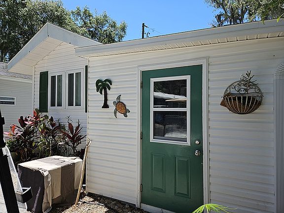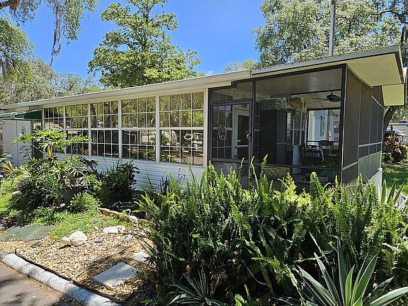 Located at Highbanks Marina & CampResort on the St. Johns River! 1 bdrm/1 bath 1990 Chariot Eagle 35 manufactured home, with 2 additions--front living room & screened porch, which overlooks a pond and just a few steps from the pool! ALL NEW (2022)--roofs, hot water heater, plumbing, faucets, toilet, wood flooring in bedroom, awnings, seamless gutters, ceiling fans and some windows. Lot rent $700/mo.