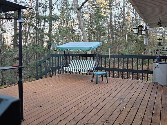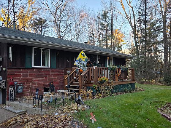 This 2 bedroom updated home has a great location just 3 miles from town in a quiet, wooded setting. The yard is beautifully landscaped with many perennials. There is a new walk-in shower, all new appliances in the large main level kitchen and another kitchen in the lower level, along with another full bath, a bonus room, a laundry room with two large closets for storage, a large rec room and some additional storage under the stairs. There is also a large utility area with work benches and some cabinetry for storage. Going back up stairs there are two large bedrooms, a sizeable living room with a fireplace, a large deck off the living room with a canopy to protect the grilling area and another deck at the front entrance. Wonderful neighbors.