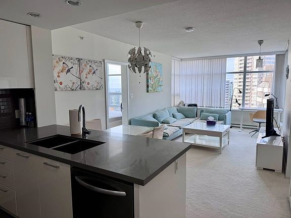 Bright 2-bedroom, 2-bathroom condo at 1801-4880 Bennett St, Burnaby. Approx. 843 sq. ft. with 1 kitchen and 1 living room, offered unfurnished. Functional layout with open living space, ideal for professionals or small families. Prime Metrotown location: only a 2-min walk to bus stop, 3-min walk to Metrotown SkyTrain, and 5-min walk to Metropolis at Metrotown for shopping, dining, and entertainment. Costco is just a 10-min drive. Excellent schools nearby including Maywood Community School (0.5 km) and Burnaby South Secondary (1.5 km). Available September 1st, 2025, with a minimum one-year lease.