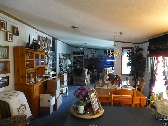 3 Bedrooms ~ 3 Baths ~ 2001 SF ~ Built 2000 ~ Double Wide Manufactured Home ~ Very well maintained ~ Kitchen has linoleum Flooring, Double sink, Dishwasher, Refrigerator, Microwave, All electric Frigidare appliances, Pantry, Lots of Cabinetry, Plant ledges, Island w/ electrical outlet and a Bar ~ Kitchen/Dining Combo ~ Den has wood burning FIREPLACE, Built-in cabinets, Cathedral Ceiling, Sliding Glass Doors to Porch and Carpet ~ 2 Additional Bedrooms have Walk-in Closets and Ceiling Fans ~ Living Room has carpet and linoleum ~ Large Master Bedroom has space for an office, Carpet, Cathedral Ceiling and fan ~ There are 2 Bathrooms in the Master: His has a SHOWER and walk-in closet ~ Hers has a GARDEN TUB and walk-in closet ~ There is WELL IRRIGATION, SECURITY SYSTEM and SMOKE ALARM ~ Carport ~ New Roof after Ivan ~ AC replaced 2013 - 5 Ton~ Multiple out buildings ~ 16x24 two story ~Metal/wood frame 11'8"x20" ~ freestanding metal carport cover 20"x20"~ wood framed 12x20~wood framed 8x12