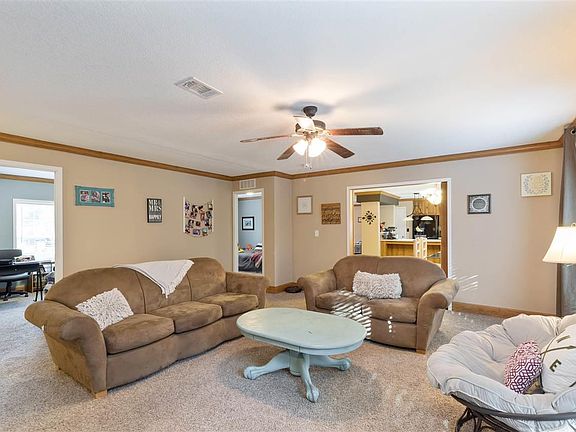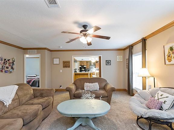 Sitting on just under 2 Acres and only 4 years old, is this beautiful 4 bedroom 2 bathroom Oversized manufactured home. As you enter the front door you are greeted by One of Two living Rooms! To the left is the HUGE Master Bedroom (and equally as big master bath). Through the front living area is the BIG and spacious Kitchen with lots of nice finishing touches, (such as the stone backsplash, the "farmhouse sink", & an abundance of cabinet space). Through the dining room are Rustic double barn doors, leading into the Great Living Room. The stone accents surround the built in entertainment area. There is an Alexa smart thermostat that has voice control which also controls the lights in the Great Living Room. All three other bedrooms are very well sized and the guest bath has Double Sinks.