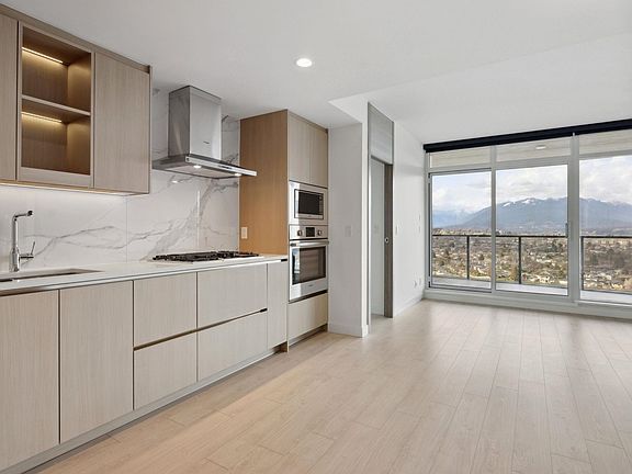 Welcome to Concord Hillside at 4880 Lougheed Highway, located in the heart of Burnaby's Brentwood neighbourhood. This two-bedroom plus den, two-bathroom home features an expansive, open layout with floor-to-ceiling windows showcasing unobstructed North Shore mountain views. The interiors offer contemporary finishes, a sleek kitchen with integrated appliances and quartz countertops, and a spacious primary bedroom with spa-inspired ensuite and ample storage. A second bedroom provides versatility, while the den is ideal for an office or study. Additional highlights include a private balcony, in-suite laundry, and one secure parking stall. Steps from The Amazing Brentwood Mall and Brentwood Town Centre SkyTrain Station, residents enjoy quick access to shopping, dining and downtown Vancouver!
