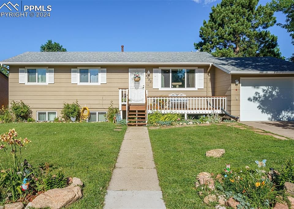 Centrally located home in move-in condition! Newer flooring and newer kitchen appliances and many newer windows. New 200 Amp electric service upgrade. New air conditioning!! Get everywhere you need to go fast! Roughly: 6 minutes to powers corridor; 10 to I-25; and 20 to Peterson. And if you need to get up north, only 10 min to AFA South Gate and 20 to I 25 Monument exit! Walking distance to schools and parks. No HOA!! Possible spot for parking for small RV, boat or another car next to driveway. Front and back yards fully landscaped with a fully fenced back yard. Sizeable attic storage in garage. Large, partially covered deck perfect for entertaining. Don't miss this opportunity!