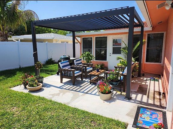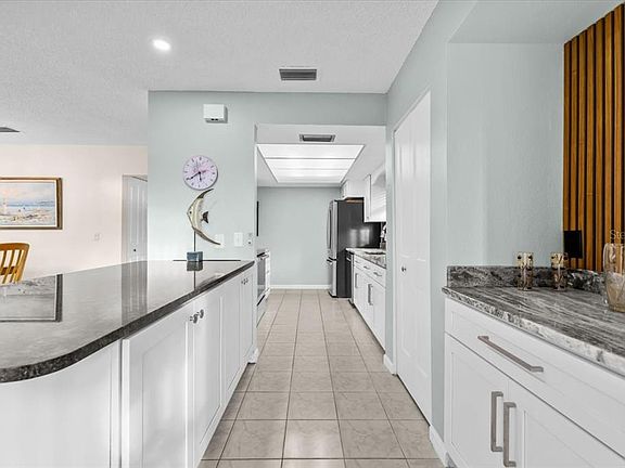 Meticulously cared for and tastefully updated, this 3-bedroom, 3-bathroom block home is situated on a corner lot in the highly sought-after community of Gulf Harbors. As you enter this lovely home, you will immediately appreciate the open, split floor plan and the abundance of natural light throughout. This property features two primary ensuites. One of the suites includes ADA features, such as a walk-in tub in the bathroom and a private entrance with a ramp, making it ideal for guests or multigenerational living. The home offers a spacious living room and a dining area conveniently located off the kitchen, perfect for entertaining and accommodating a large dining table. The recently remodeled kitchen showcases white wood cabinetry with self-closing drawers, granite countertops, a tiled decorative backsplash, a bar area, and new appliances, including a stove, dishwasher, and convection oven. Toward the back of the home, you’ll find a generous primary bedroom with an updated ensuite featuring a walk-in shower and new vanity. The secondary bedroom offers laminate flooring and a closet, while the third full bathroom has been fully tiled and features a stylish white vanity with quartz countertops. Off the living room is a finished enclosed Florida room that can serve as a bonus/entertainment room, office, or game room. The large, newly fenced, and landscaped backyard provides the perfect setting for outdoor gatherings. A larger concrete patio (accessed from either the Florida room or the ensuite), covered by a pergola with adjustable louvres, provides a sanctuary from the afternoon sun. A small shed for additional storage is also included. Gulf Harbors residents have the option to join the private beach club located on the Gulf of Mexico, only 1.6 miles from this property, for a nominal annual fee of $200. This community not only provides access to two exclusive boat ramps but also offers additional amenities for a small fee. It's ideally situated near Tarpon Springs and Downtown New Port Richey, making it an excellent choice for a vacation rental or a secondary home. This property beautifully blends comfort, convenience, and the vibrant Florida coastal lifestyle. Updates include: Roof (2024), Impact Windows (2025), Electrical & Panel (2023), HVAC (2022), Interior Renovations & Paint (2025), Exterior Paint (2024), Exterior Landscaping (2023). Come see this beautiful home before it’s gone and start enjoying stunning sunsets from your own yard!