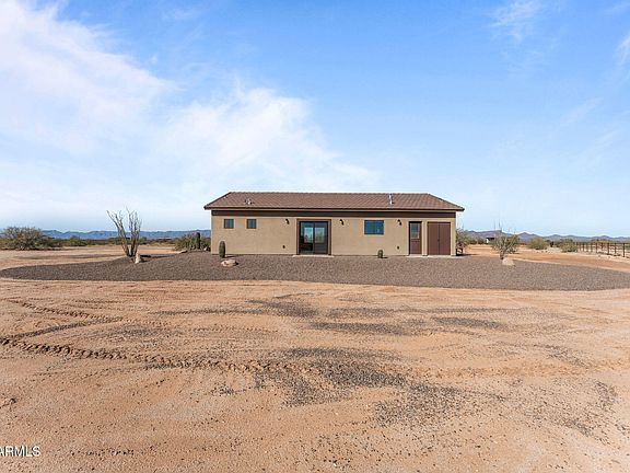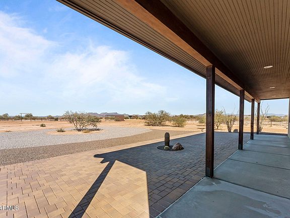 This charming 2 bed, 2 bath home sits on 5 fully fenced acres and is perfectly set up for ropers and horse lovers alike. Enjoy a full-size 270x150 roping arena with 20 loads of fresh sand recently hauled in! The property also features four covered 30x40 horse pens with electric and water, plus a tack room with electric, lighting, concrete floor, and two covered sides. Other highlights include a shared well (with 2 other parcels), CC&R's allowing stick-built homes only, and beautiful desert landscaping with pavers front and back. A circular driveway, two RV hook-ups, and breathtaking mountain views complete this turn-key setup. Conveniently located just 7 minutes to Aguila, 20 minutes to Wickenburg, and 25 minutes to Congress this property offers the perfect blend of rural lifestyle and accessibility.