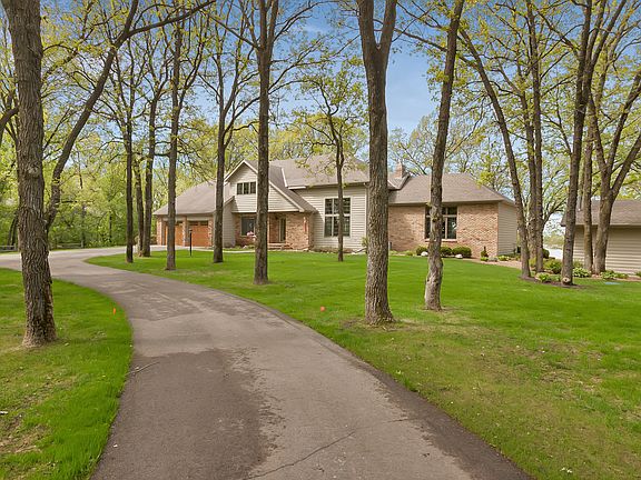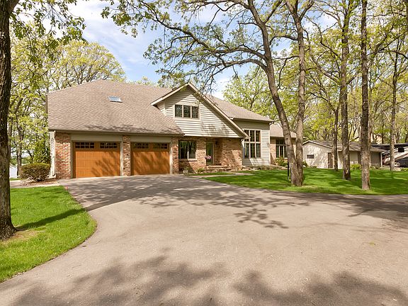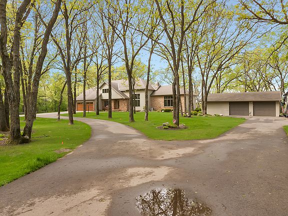 Gorgeous executive lake home on private Round Lake w/easy access to Long Lake. Beautiful upscale kitchen w/granite and cherry cabinetry. 2 sunrooms w/great views of the lake. Large open rooms w/10 & 12 ft ceilings. Spacious private master suite w/full bath. Finished walkout lower level. Pride of ownership throughout! Over two landscaped acres w/215 ft of shoreline. Very private & wooded w/mature trees, large deck, patio, and 5 stall parking w/attached & detached garages. Check out virtual tour!