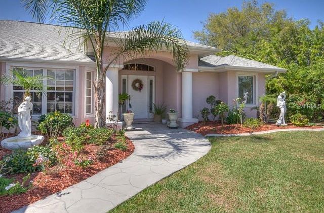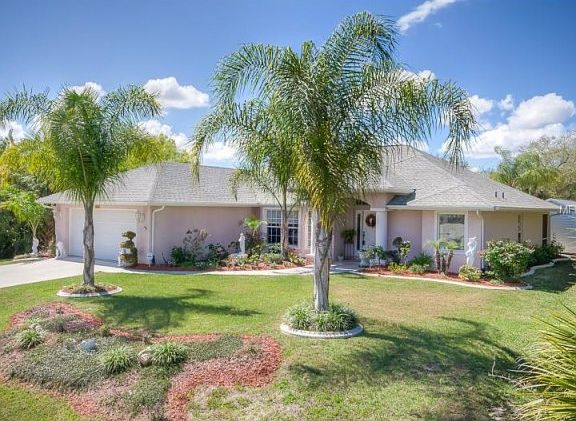 Spectacular 3bd, 2 bath, 2 car garage canal front luxury home. Over 2000 sqft under air! This custom built "Premier Home" model, has all the "bells & whistles"! Enjoy multi-pillared columns & tiled front foyer upon entry. Serene private view setting of the Bass Point Waterway from the front door! Fantastic view! You will fall in love with the upscale kitchen offering crown molding, decorative built in glass pane china cabinetry, beveled edge counter tops , large breakfast bar w/decorative upgraded lighting & ceiling fans! Electric fireplace in 20ft family room included! ($4000 value!) Home has 3 entries to lanai patio! Perfect setup for a future pool. Elegant dining rm has bump out bay french window. 18ft Master bd. has impressive tray ceiling & sliding door leading to lanai patio. Gorgeous master bath has custom stained glass window, garden tub, roman shower & dual sinks. Built in stereo w/surround sound system piped through out home! Incredible array of tropical palm trees & shrubbery embellish the decorative walkways surrounding this picturesque home! In a league of it's own, this home also sports a 20ft storage shed. Put this home 1st on your list! You will not be disappointed, located close to shopping, dining I-75 access, and gulf beaches only a short 20 min. drive away!