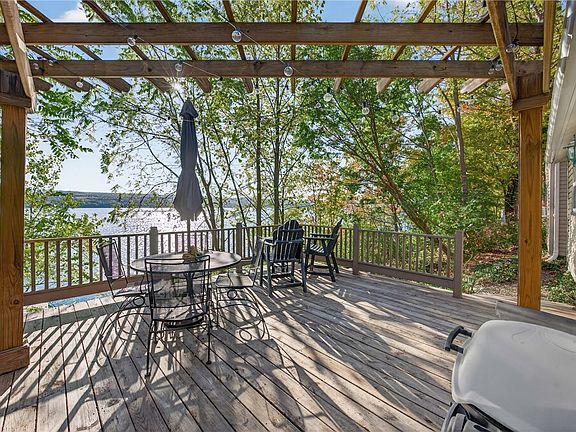 Fantastic opportunity for lake front living at its best. This seasonal cottage has everything you need to enjoy the lake life. Surrounded by nature in a quiet location on the west side of Seneca Lake, this one bedroom one bath cottage has it all. The open concept living area has luxury vinyl plank flooring and large windows providing spectacular views of the deck and lake. A well-equipped kitchen provides ample storage and plenty of counter space. The laundry room sits between the bathroom and bedroom that has a queen sized bed and large closet. A separate bunk house is currently being used for additional sleeping quarters. Take in the morning sunrise and amazing view on the deck that has a partial pergola, grill and generous seating area. Head down to the water to play cornhole, swim, sunbathe or enjoy an evening campfire. At the lake, there is a break wall, covered boat hoist, 16' wide permanent dock, fire pit and a storage shed with plenty of room for your water toys and tools. There are 44 feet of level lake front to enjoy. This home is the perfect getaway, in a great location close to wineries and Watkins Glen, your place to relax away from hustle and bustle. Equipped with a wall heater unit, water filtration system, UV device, laundry, and parking for 2 cars. All furnishings and items on site included. This is a great value. Delayed negotiations 10/13/25 at 5PM.