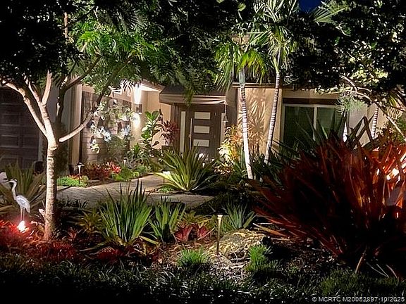 A Natural Paradіѕе - Beаutifullу remodeled sanctuаry, ѕurrounded by lush, masterfully designed landscaping with professional lighting that transforms the property into a tropical retreat. Step inside and feel instantly grounded and welcomed. Soaring ceilings highlight the living space while the bright, renovated kitchen w/ quartz countertops and modern finishes make it home. Whole house solar = No FPL Bill! Enjoy serene lake views and the privacy of a screened enclosure buffered by rich tropical foliage. The covered lanai with awnings invites year-round outdoor living — complete with a saltwater pool, grill, and fire pit. Upgrades include: Impact windows, metal roof, solar panels, Ring alarm system, new AC's. This move-in ready home combines elegance, comfort, and natural beauty. Piper’s Landing offers low-density living in one of Palm City’s most desired private communities, featuring unlimited golf, a private marina with slips, tennis, pickleball, fishing, fitness center, and more.