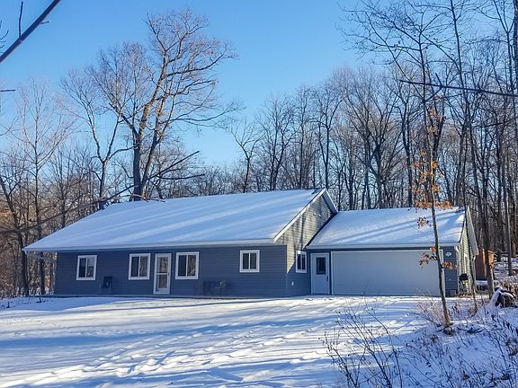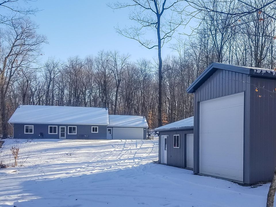 Nestled on 1.83 acre wooded lot near Big Pine Lake, this custom-built 3BR single-level home showcases premium finishes, along w/huge storage shed/man cave. Includes 80' easement to Big Pine Lake. Tucked in mature maples & presenting some of prettiest fall colors you will find. Quality throughout this light-filled open concept home showcasing vaulted cedar ceiling, soft-close alder cabinets, heated floors, & luxury vinyl-plank flooring for that cozy warmth. Master en suite features huge walk-in closet & luxurious spa/bath. Relax in shower spa w/steam & massage tower or jetted tub. Inviting covered front porch. Detached shop/man cave w/knotty pine walls, built-in cabinets, & freestanding wood fireplace. 32x14 cold storage has 12 ceiling. Nothing to do here except enjoy life!
