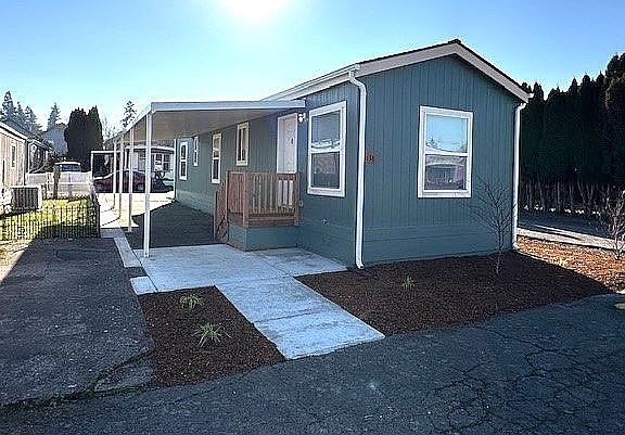Outside, you have a deck awning and a brand new carport. The space also has low maintenance landscaping! Space rent: $740/month