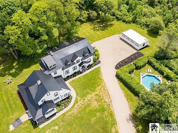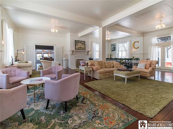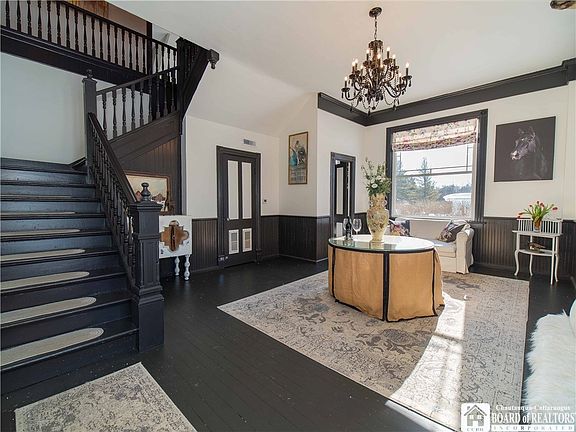 Every home tells a story, and 4882 Potter Road is no exception. Originally constructed in 1887 and beautifully reimagined in 2019, this stunning country home is just getting started! Perched atop a rolling hill in the picturesque Chautauqua County countryside, this residence offers breathtaking views of Chautauqua Lake and the surrounding treetops. The stately entrance provides a perfect frame for this one-of-a-kind country home. Upon entry, a sweeping staircase sets the tone for the grandeur and charm that unfold throughout. Passing through the foyer, you’ll find a spacious living room perfect for family gatherings—and then some! The large chef’s kitchen, with its premium appliances and soaring ceilings, is a dream for culinary enthusiasts, whether you're preparing a gourmet meal or creating the perfect summer salad. The main level also features a den, study, bedroom, two bathrooms, formal and casual dining rooms open to the deck, and a caterer’s kitchen, making it ideal for everyday living and grand entertaining.