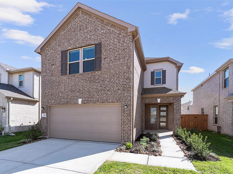 KB HOME NEW CONSTRUCTION - Welcome to 4884 Sun Falls Drive, a move-in ready home in the community of Sunterra, zoned to Royal ISD. This home has NO BACK NEIGHBORS and offers 3 bedrooms, 2.5 baths, and an attached 2-car garage. Step inside to discover a beautiful kitchen featuring stainless steel Whirlpool appliances, Woodmont cabinetry in a rich Black Fox finish, and Silestone countertops with breakfast bar. The primary suite boasts a raised dual-sink vanity, separate soaking tub and walk-in shower. The secondary bathroom also includes a raised extended dual-sink vanity, offering convenience for family or guests. Additional highlights include 2" faux wood blinds, 8' Modern Entry door with SmartKey hardware, black exterior coach lights, full gutters, automatic sprinkler system in the front and back yards, and a covered rear patio — perfect for enjoying the outdoors year-round. Don’t miss the opportunity to make this home your new address — schedule your private tour today!