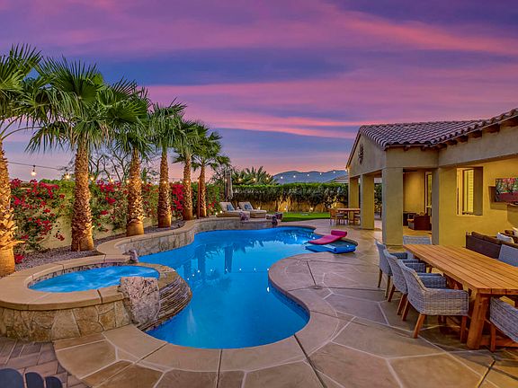 Welcome to Montage at Santa Rosa Coachella Festival Fans Favorite Resort Style place to be! Historical and forward performing luxury short term rental (STR) investment opportunity in this fabulous fully furnished remodeled Tuscan Style home featuring 5 spacious bedrooms, 3 baths. Multiple indoor & outdoor entertainment features = Relaxation & Fun! Open spacious gourmet kitchen boasts top of the line SS Appliances- built in cabinets, Calcutta marble waterfall countertop island w/ casual sit down & bar top seating, separate mini bar, fireplace Lg screen TV perfect for cooking while entertaining with friends & family! Step outside to your full-on private resort, flowing Palm Trees, Lg freeform saltwater pebble tec Pool & Spa, misting system, spacious patio deck, multiple lounge areas for tanning & dining options, cocktails at the spacious BBQ island or cozy firepit. Putting green, cornhole, bocce ball or move the party indoors to the tricked out Amazing Arcade Game Room w/ multiple full size Arcade games, Air Hockey, Pool Table, Foosball & more!Multiple options indoor and out, accommodating your entire group of friends & family with ample parking, walking distance to Coachella / Stagecoach, Polo & plenty of Golf, Dining and Shopping! Welcome to your private STR Resort!