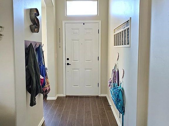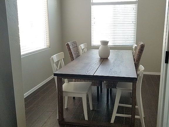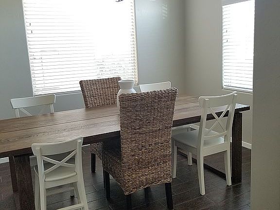 This home is only two years old and boasts an open floor plan with with modern upgrades: wood look tile floors, farmhouse sink, white painted cabinets, and oil rubbed bronze fixtures. The master bath has a dual sink vanity, large soaking tub and walk-in shower. The backyard is landscaped with lush fescue grass, irrigation system, and pea gravel patio with fire pit perfect for the kids or dog to run around. The home backs up to a quiet road so there's no rear neighbors. Walk the kids to Monte Vista Elementary or Mesa Middle School. Cool off during the hot summer days at the splash pad park only one block away! 3% commission for buyer's agent.